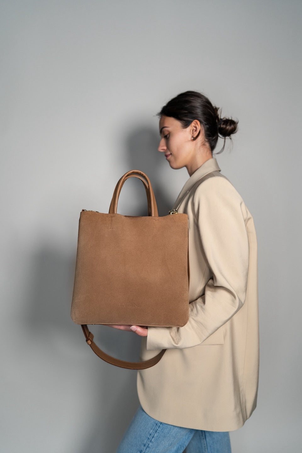 ▪ Handles, strap and base crafted from pebbled leather